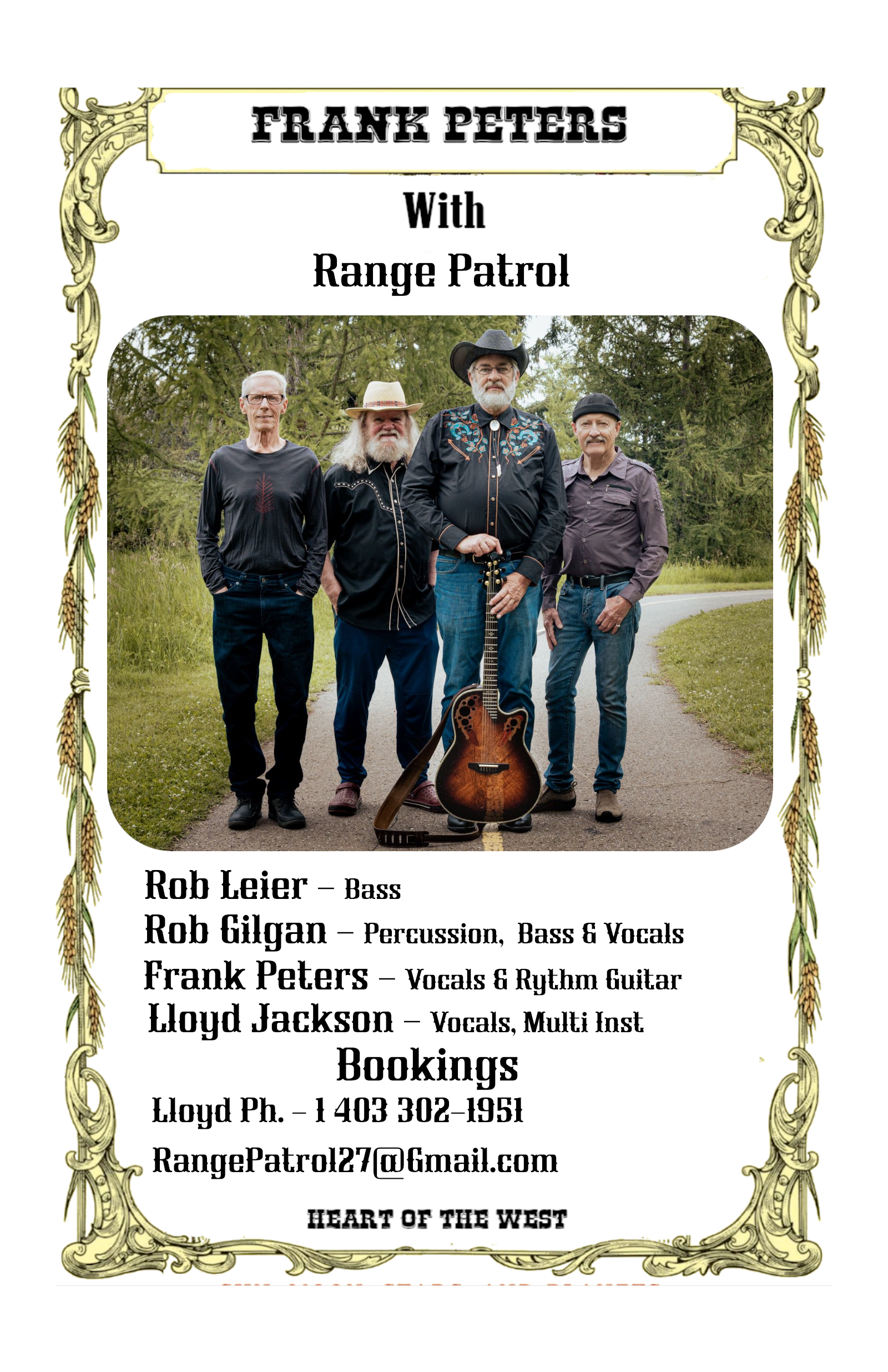 Bookings Email RangePatrol27@gmail.com or Call Lloyd at 1 403 302-1951 |